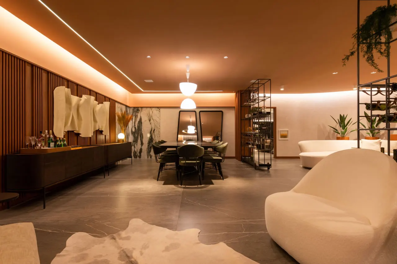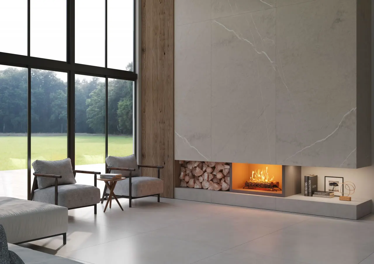 A inspiração clássica dos mármores italianos ganha um toque contemporâneo com os grandes formatos em porcelanato e laminas , que diferenciam essa pedra natural supernobre e cada vez mais rara, são eternizados na peça. Funcionalidade e sustentabilidade para projetos de arquitetura que pedem um toque clássico e nobre.