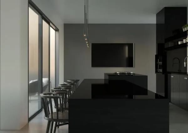 Materiais essenciais da arquitetura inspiram o porcelanato monocolor, e são reinterpretados de forma minimalista e atemporal. Branco, cinza, preto e um tom de verde muito orgânico e natural, o oliva, trazem colorações plenas em sua forma mais original. Cores versáteis e contemporâneas com altíssimobrilho, polido, servem de matéria para novas criações, especialmente para projetos de mobiliário.